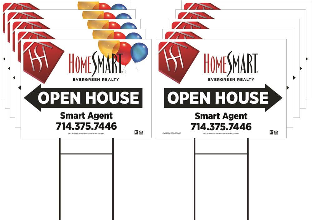An exceptional value! Includes 18x24" 6mm Coroplast Open House Signs with stakes. Available in 6 and 10 packs.