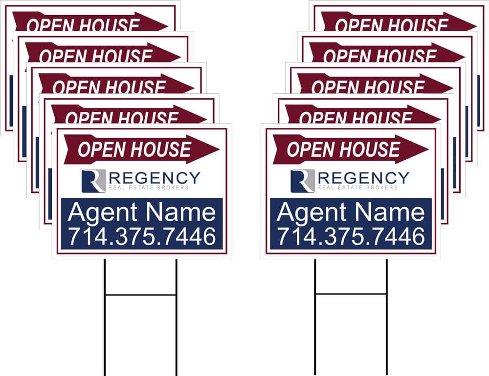 An exceptional value! Includes 18x24" 6mm Coroplast Open House Signs with stakes. Available in 6 and 10 packs.